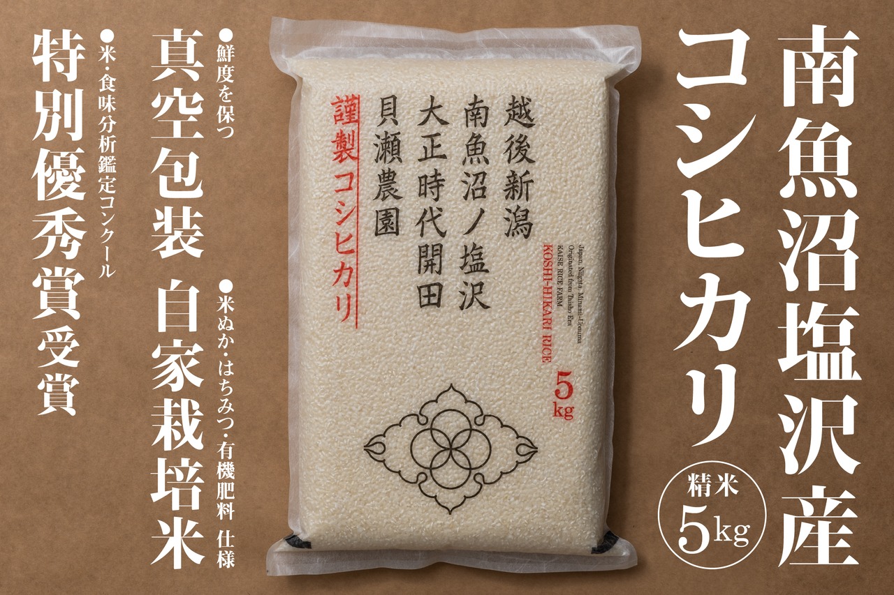 精米5kg「貝瀬農園米」自社栽培 南魚沼塩沢産コシヒカリ