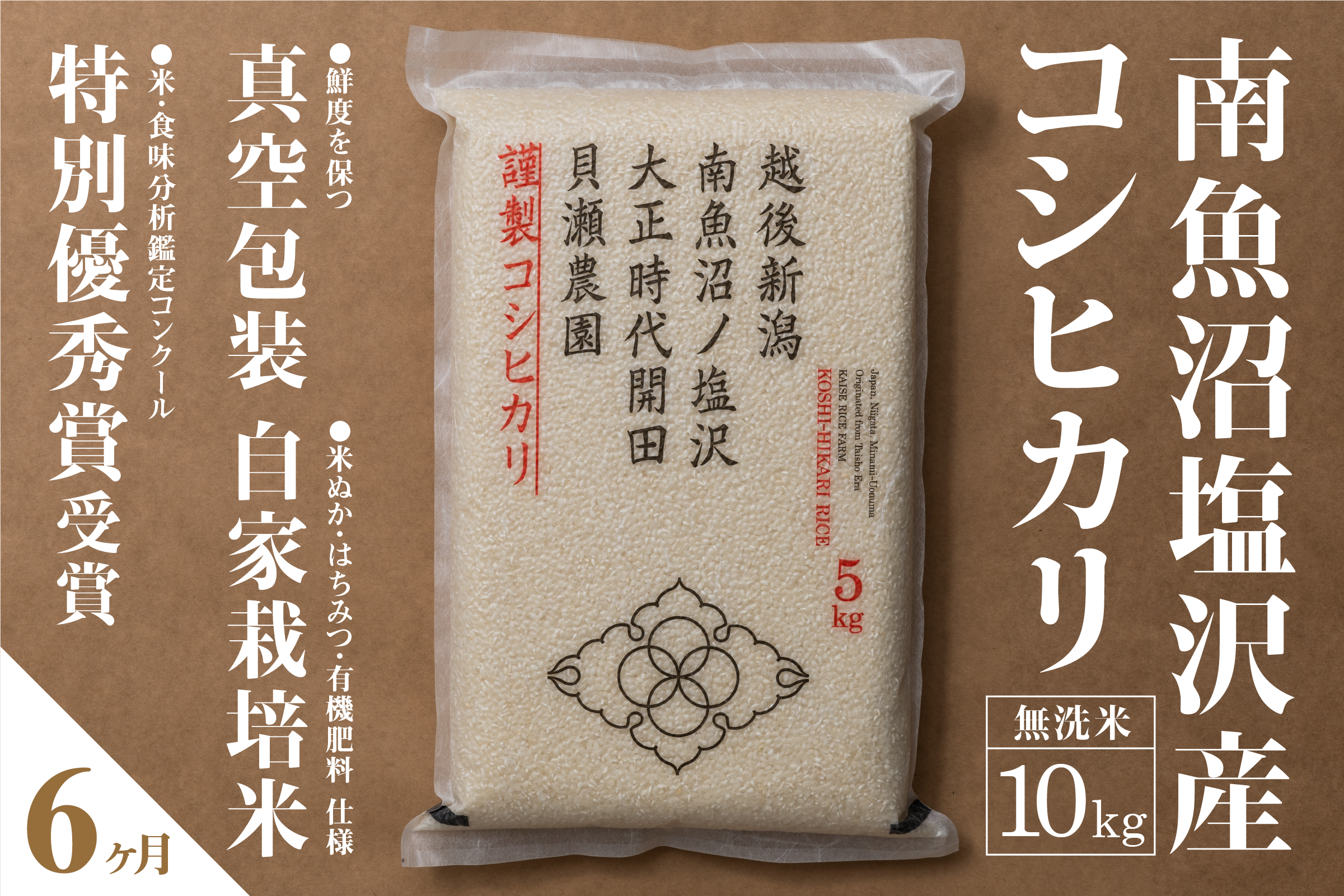 【定期便全6回】精米10kg「貝瀬農園米」自社栽培 南魚沼塩沢産コシヒカリ
