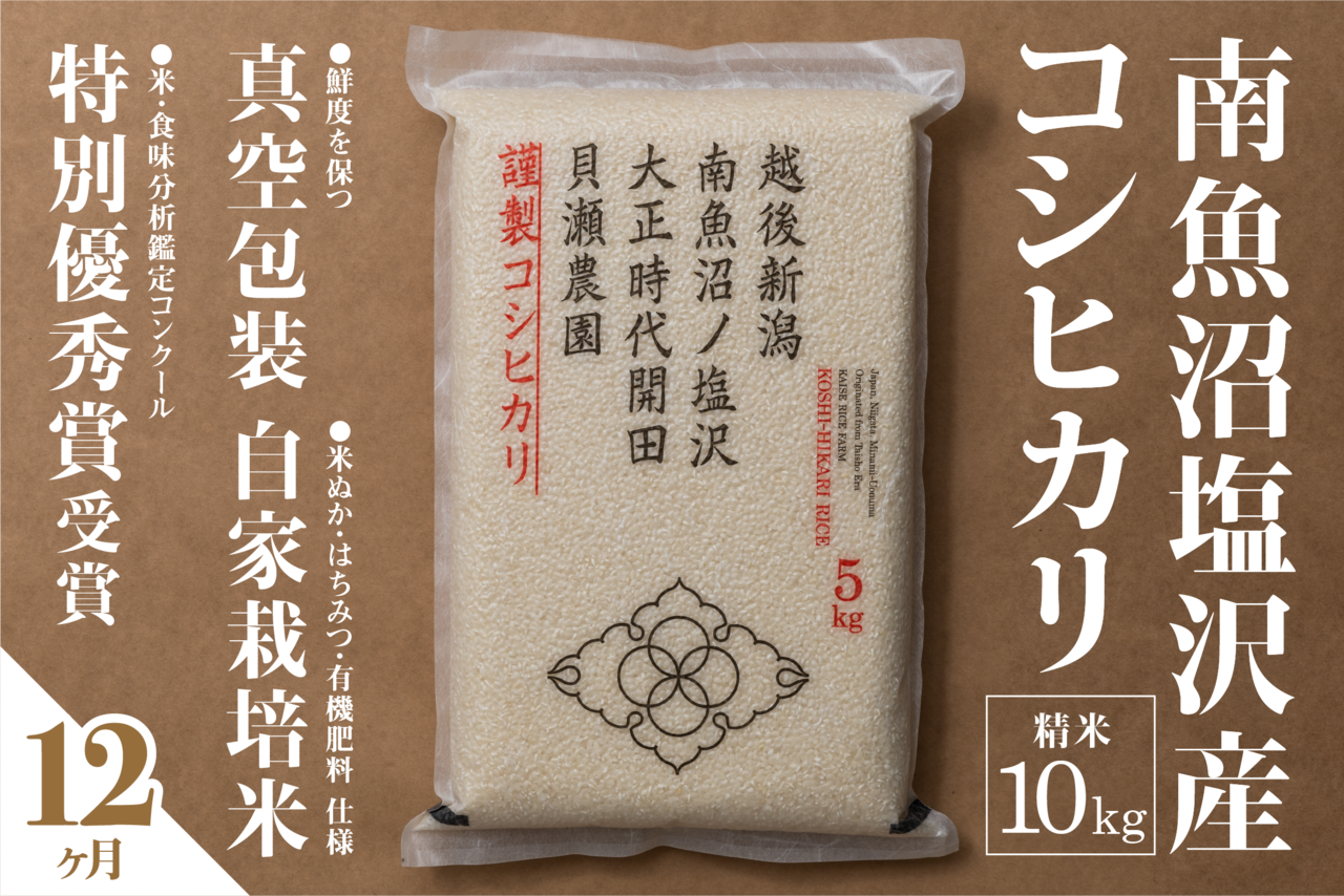 【定期便全12回】精米10kg「貝瀬農園米」自社栽培 南魚沼塩沢産コシヒカリ