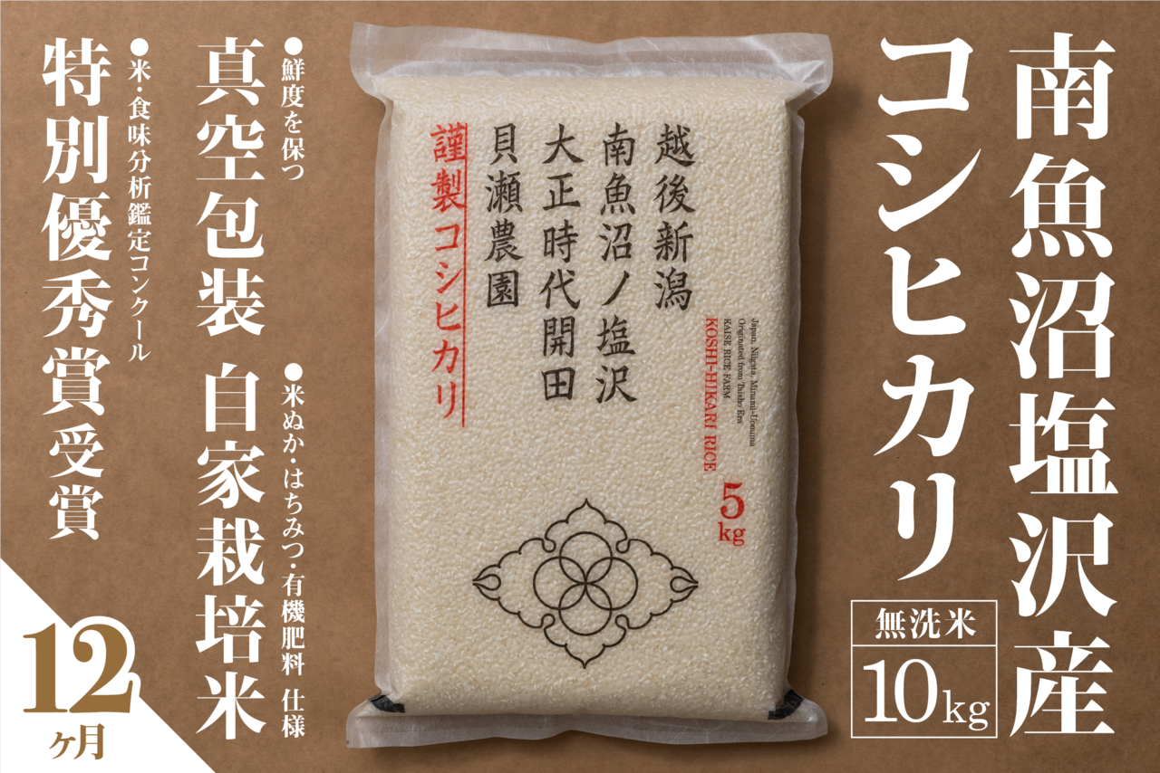 【定期便全12回】無洗米10kg「貝瀬農園米」自社栽培 南魚沼塩沢産コシヒカリ